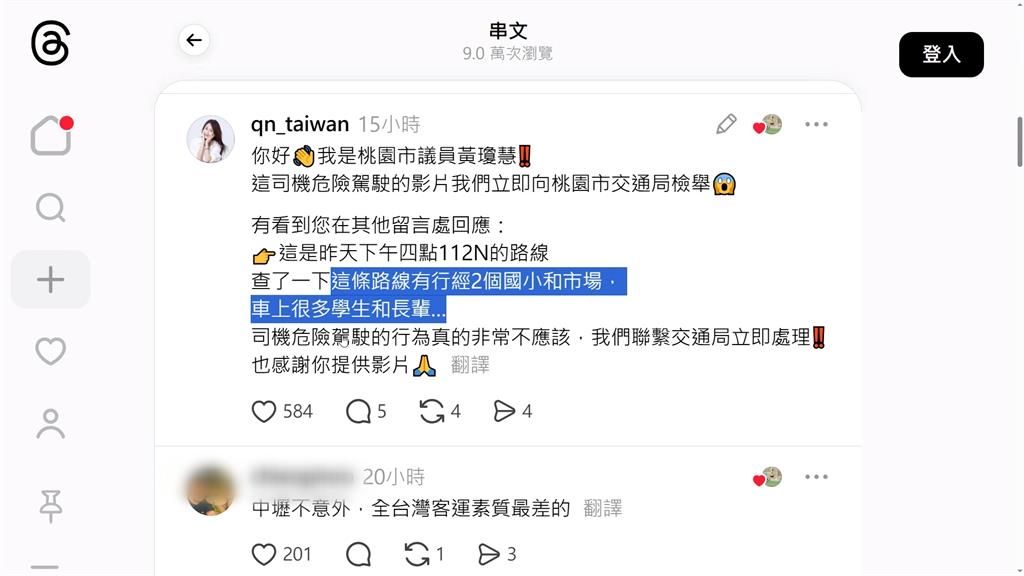 ,议员黄琼慧直言涉及危险驾驶,痛批非常不应该,对此中坜客运公开致歉,交通局也展