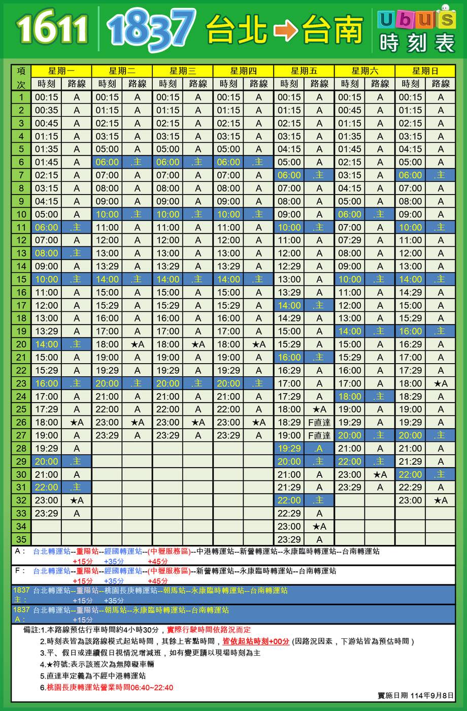 01 00 1611A 永康 新营 中港 经国 重阳 台北 6