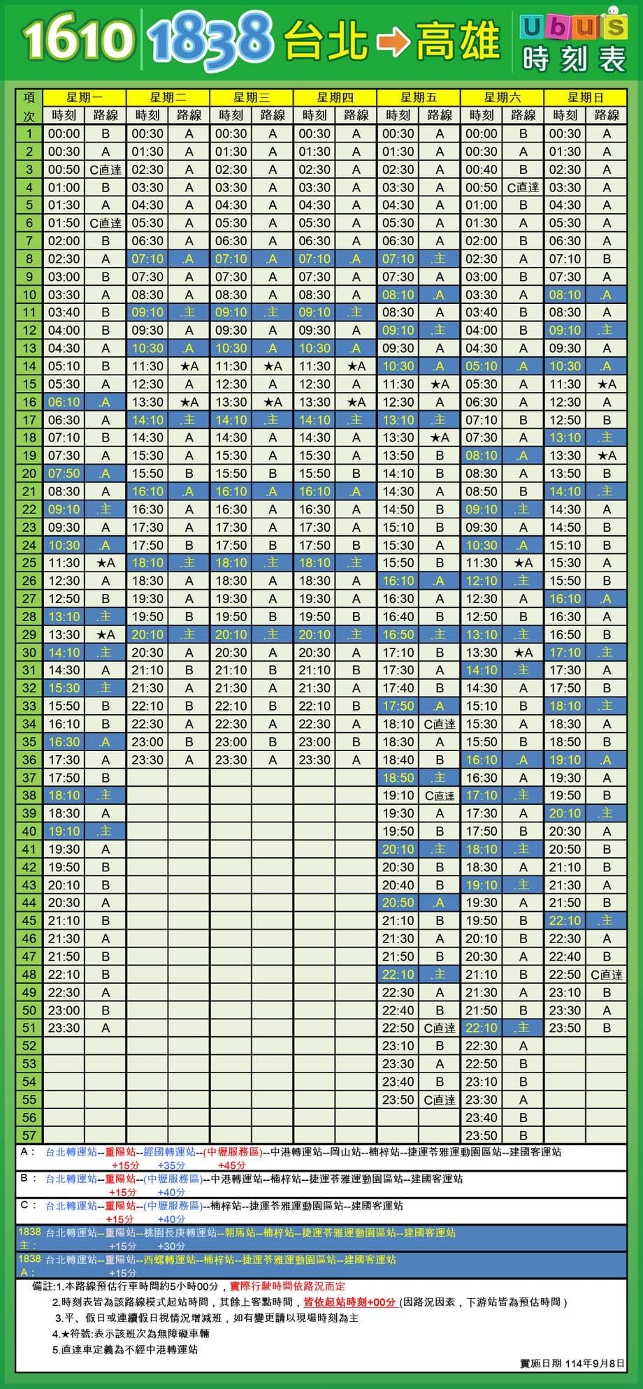 16 20 1838A 楠梓 - 西螺 - 环北 台北 5 7