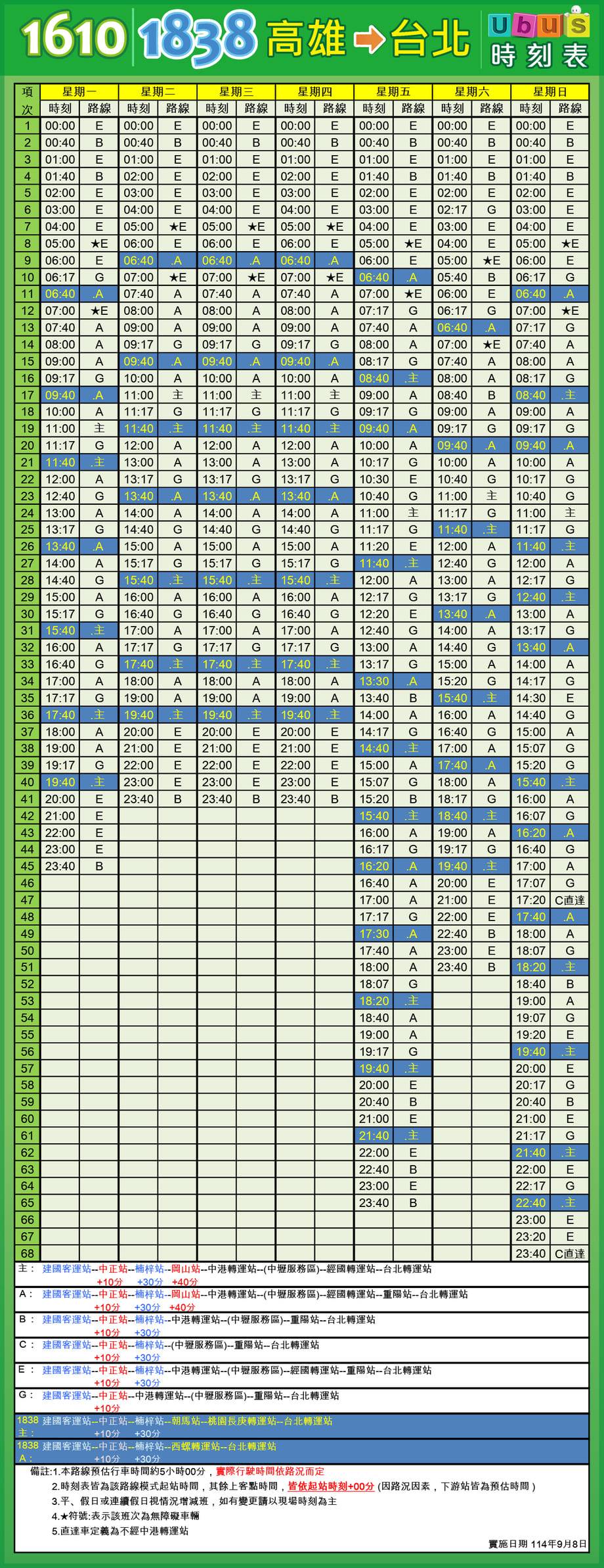 20 00 1610E 楠梓 - 中港 经国 重阳 台北 1234567