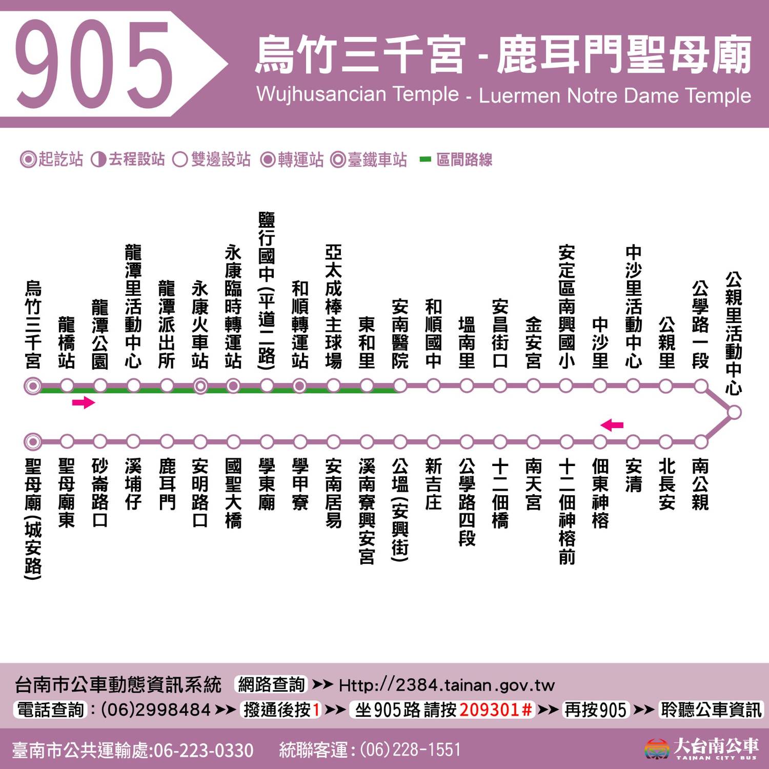 营运路线 大台南公车 905 乌竹三千宫-安南医院-鹿耳门圣母庙