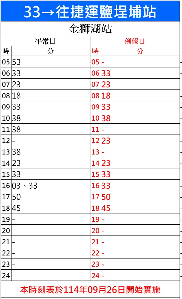 平常日 金狮湖站 由 12班次 调增为 14班次
