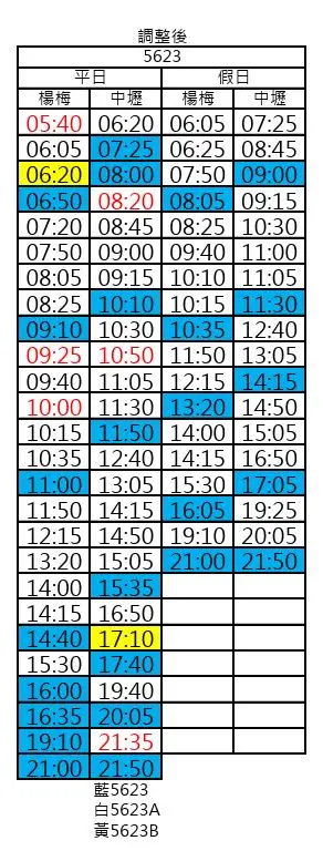 5623A 平常日 杨梅站 增开 05:40 班次、10:10 班次调整为 10:00 发车