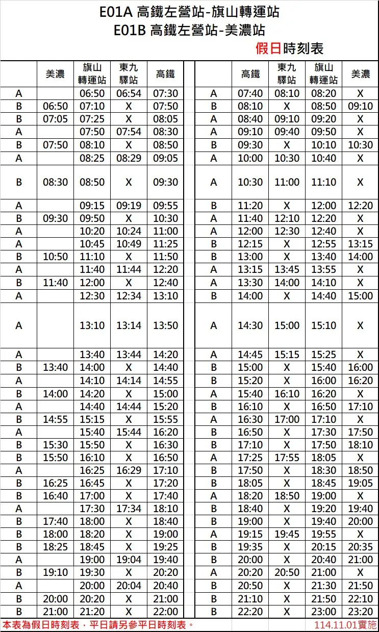 高雄市公车 E01A 旗美国道快线 高铁左营站-旗山转运站