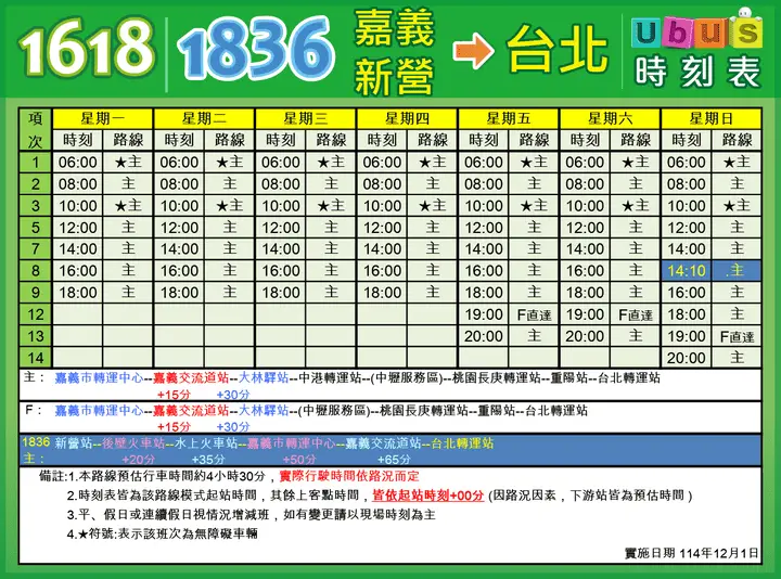 1618B 台北-嘉义 [不停林口、中港、大林]
