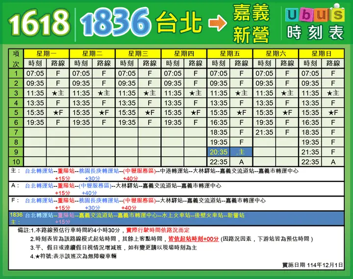 19 35 1618F 重阳 林口 - 大林 嘉义 1234567
