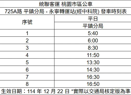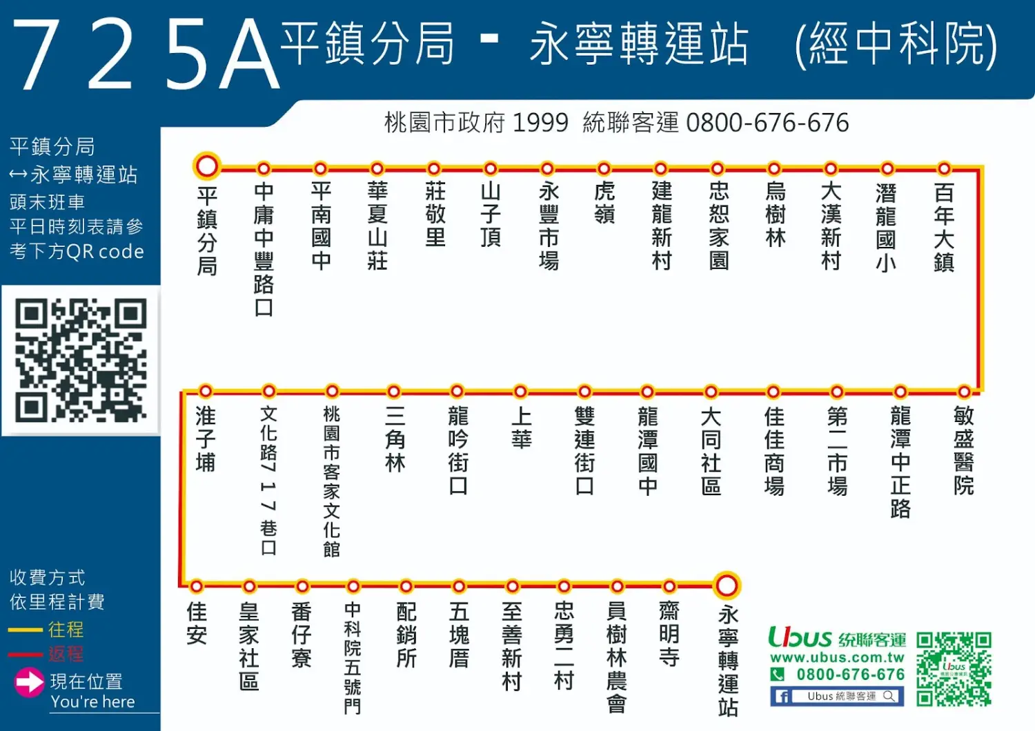 桃园市公车 725A 平镇分局-永宁转运站 (经中科院)