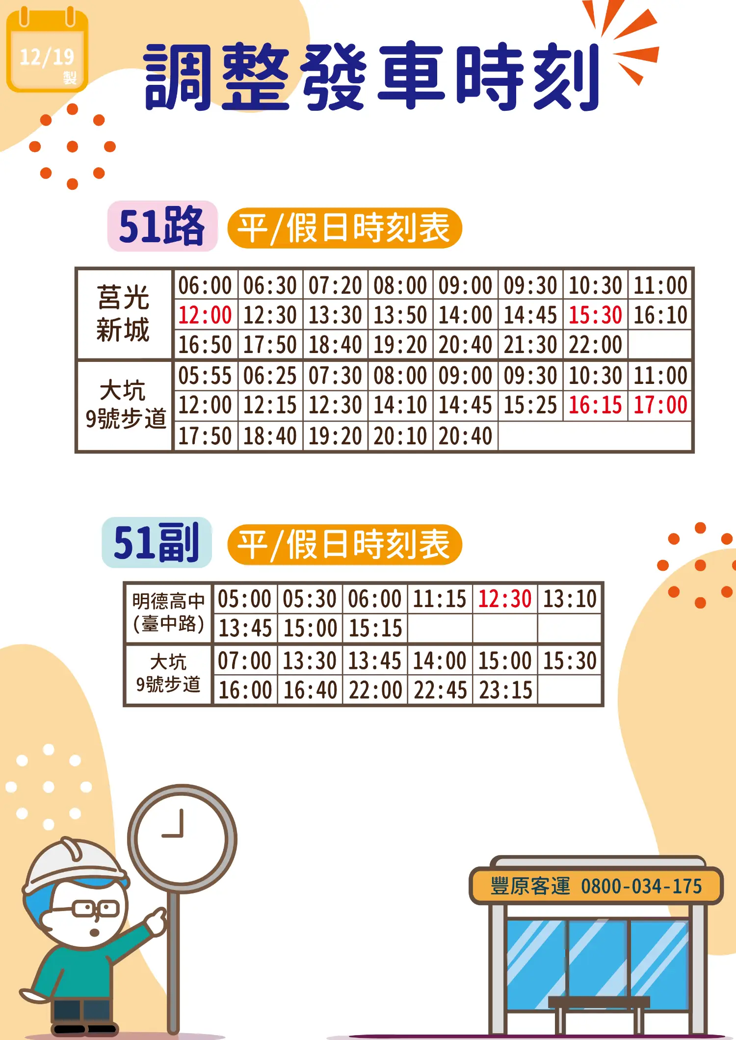 51 每日 莒光新城 11:50/15:35 班次调整为 12:00/15:30 发车