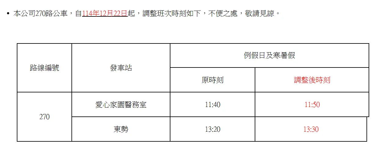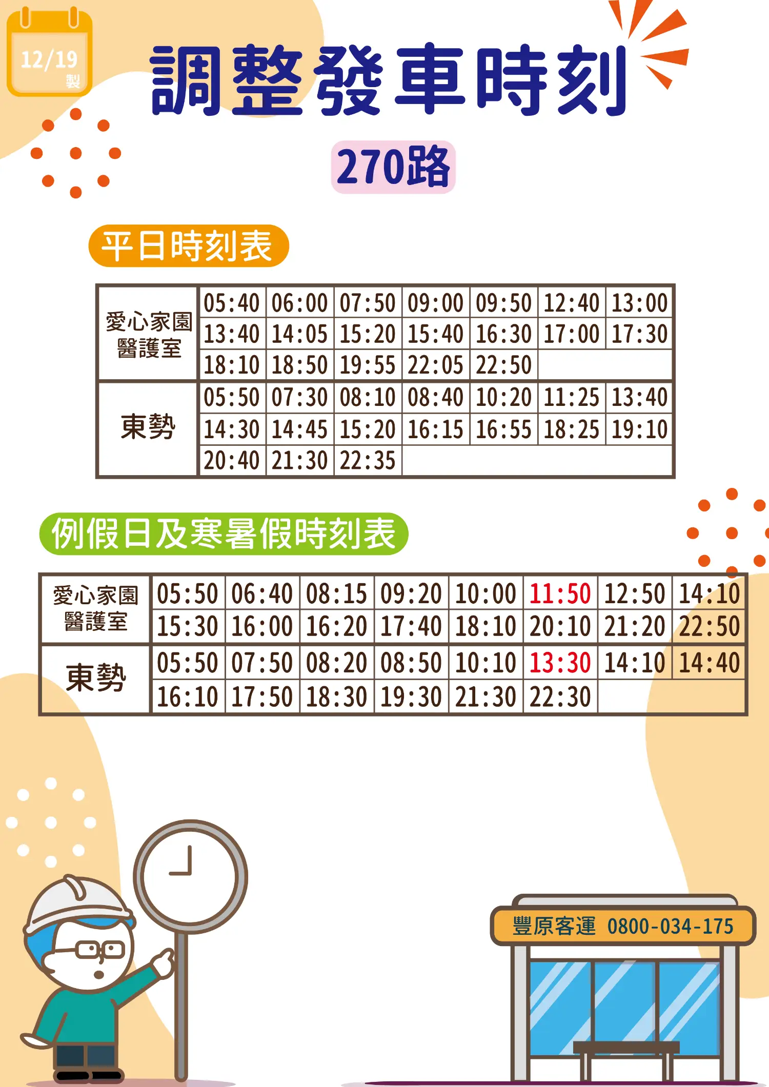 270 例假日 爱心家园医务室 11:40 班次调整为 11:50 发车