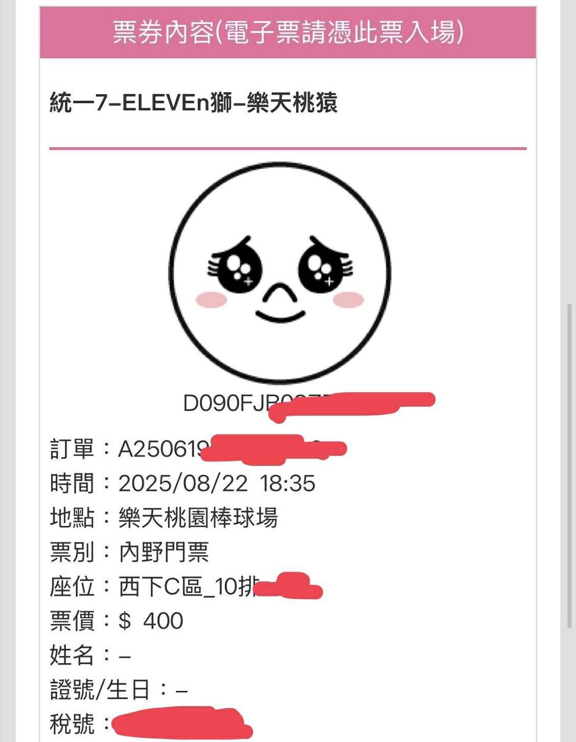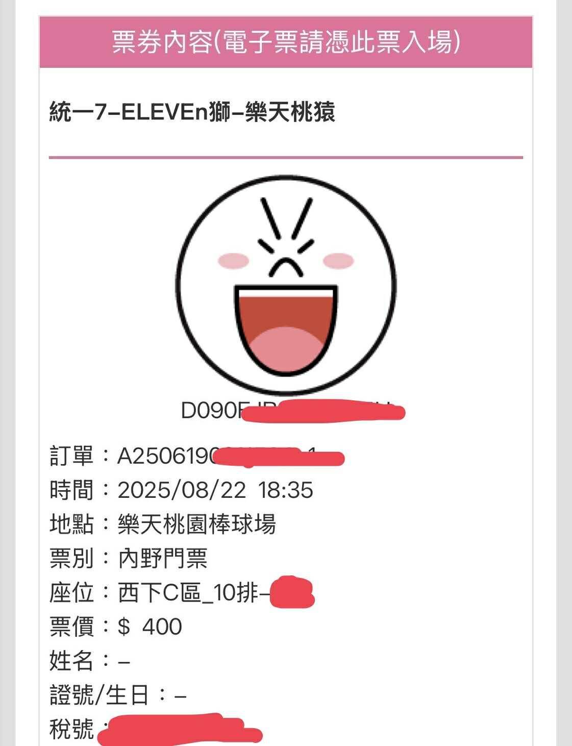 票券日期:2025/8/22 (阿迷趴)
