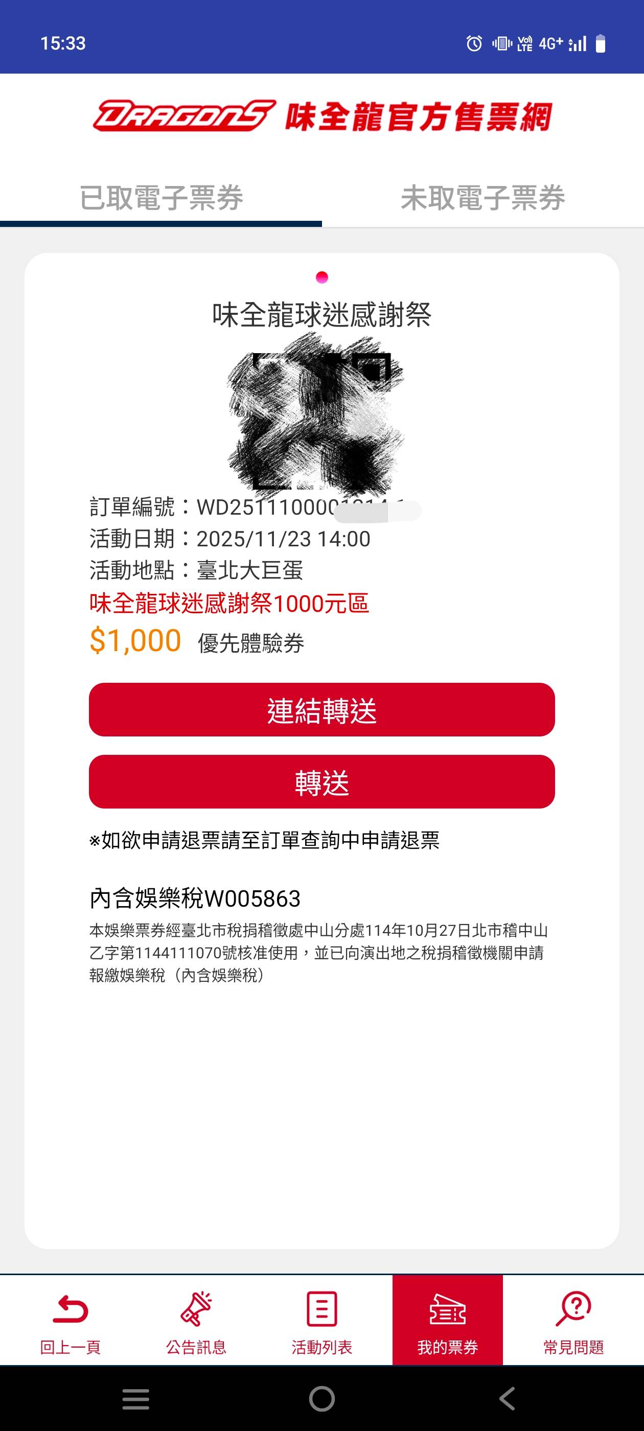 标题[卖票] 11/23 味全感谢祭 优先体验券
