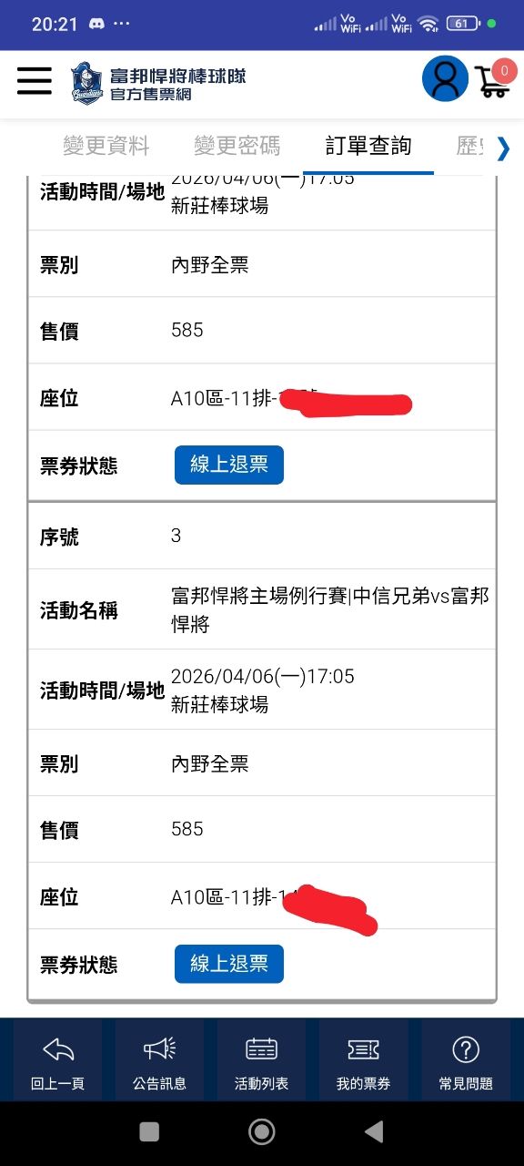 标题[卖票] 4/5&4/6 乐天vs富邦 中信vs富邦 内野