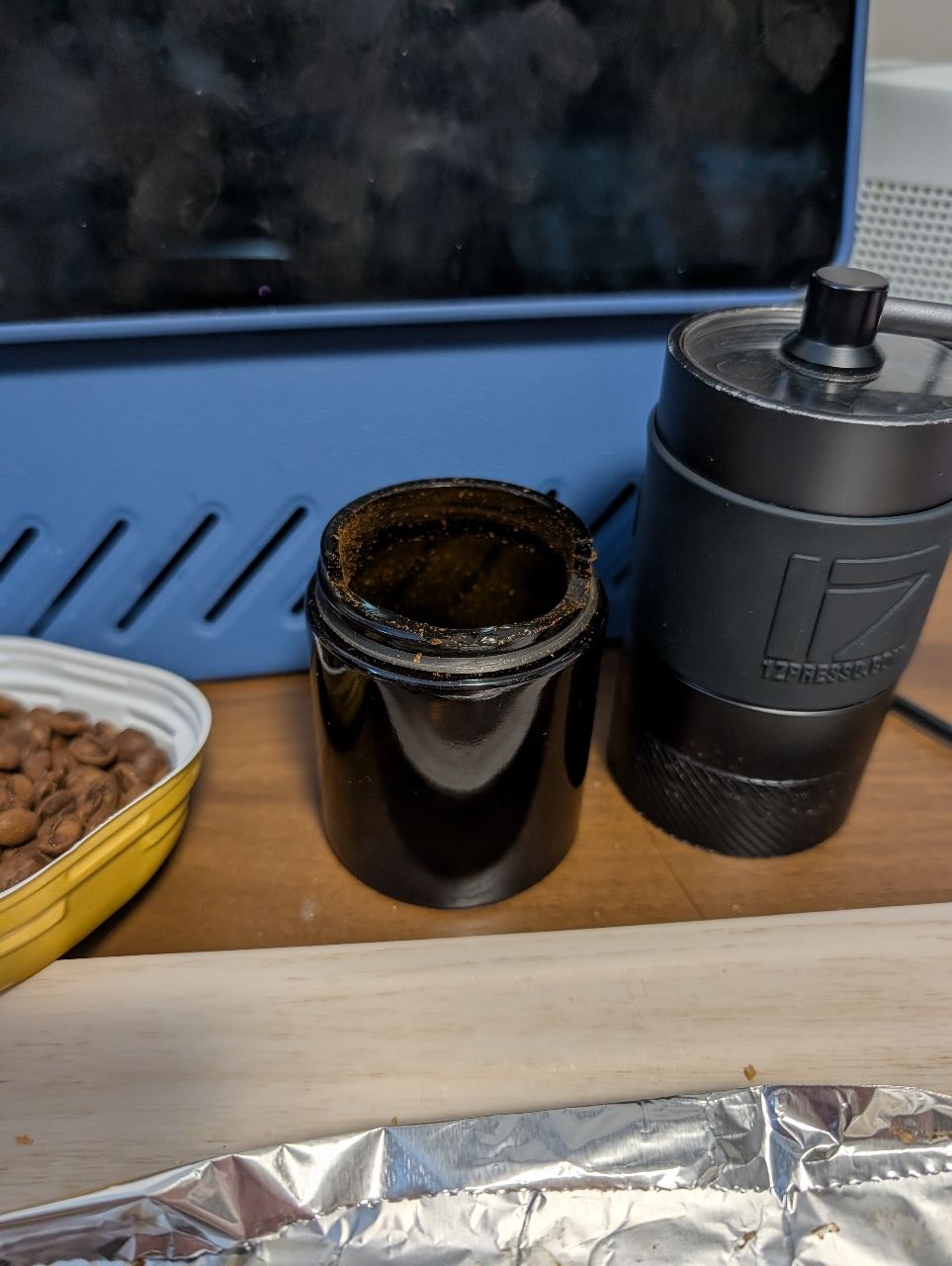 不小心敲破多年前买的磨豆机粉瓶,这个好像是JS的试做版之类的。
