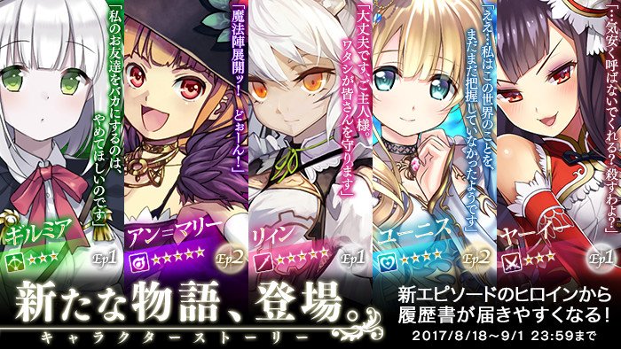 本日のアップデートでは以下のキャラクターストーリーが追加されます。