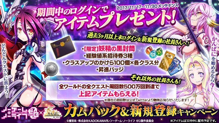 キャンペーン期间中の全ワールドの社长さんによる全クエスト周回数が500万回を突破