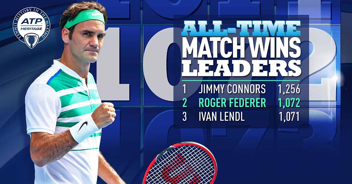 职业生涯胜场数来到 1072胜,超越Lendl成为第二。