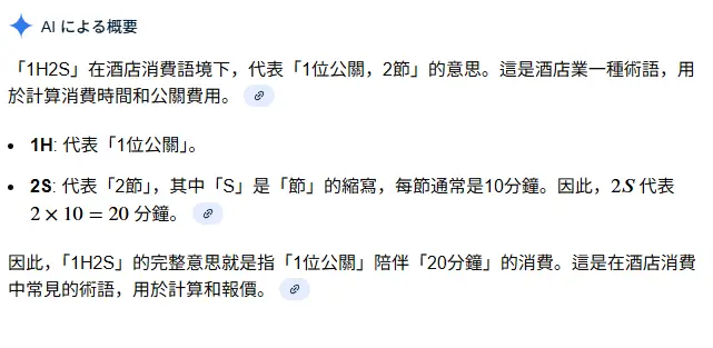 67F:→ zChika: AI说是1个人(H)2节(S)(一节=10分钟)的意思 106.107.208.26 11/21 15:59