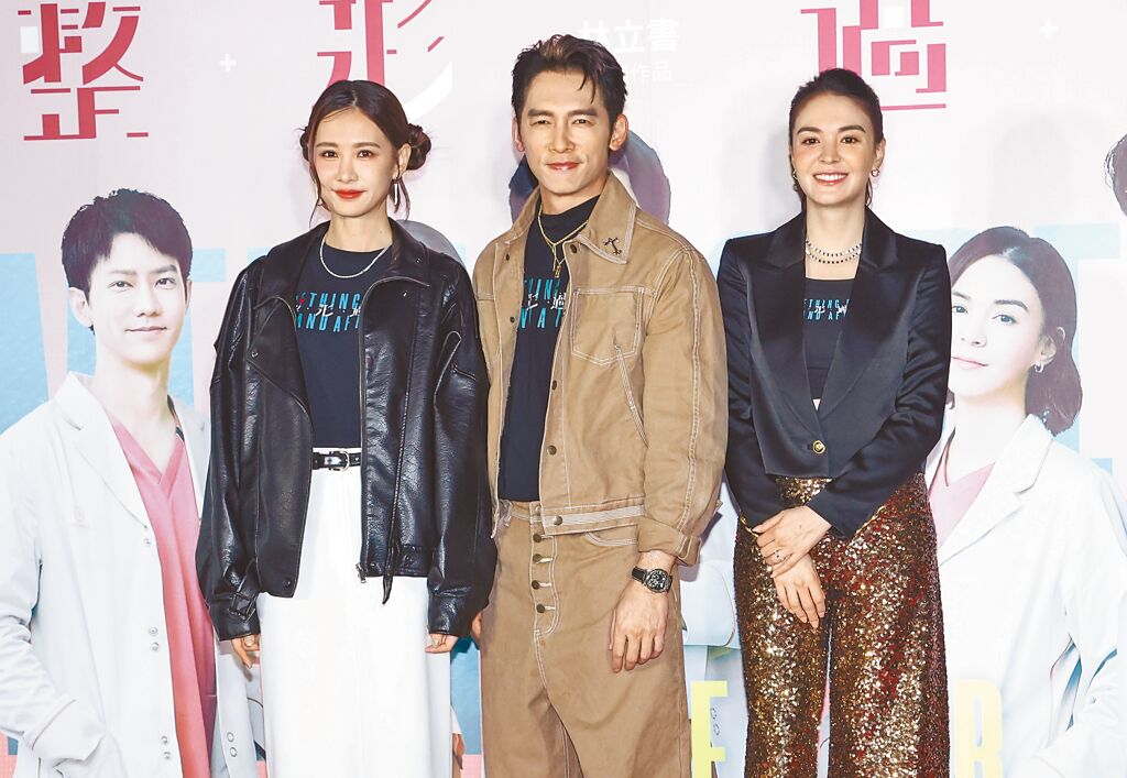 安心亚(左起)、温昇豪、张榕容9日出席《整形过後》首映会。(陈俊吉摄)