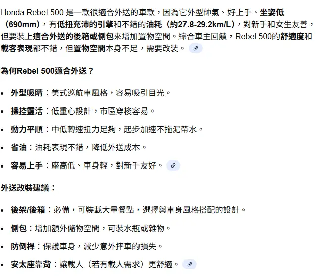 标题[问卦] 没人发现honda rebel 500很适合当外送车