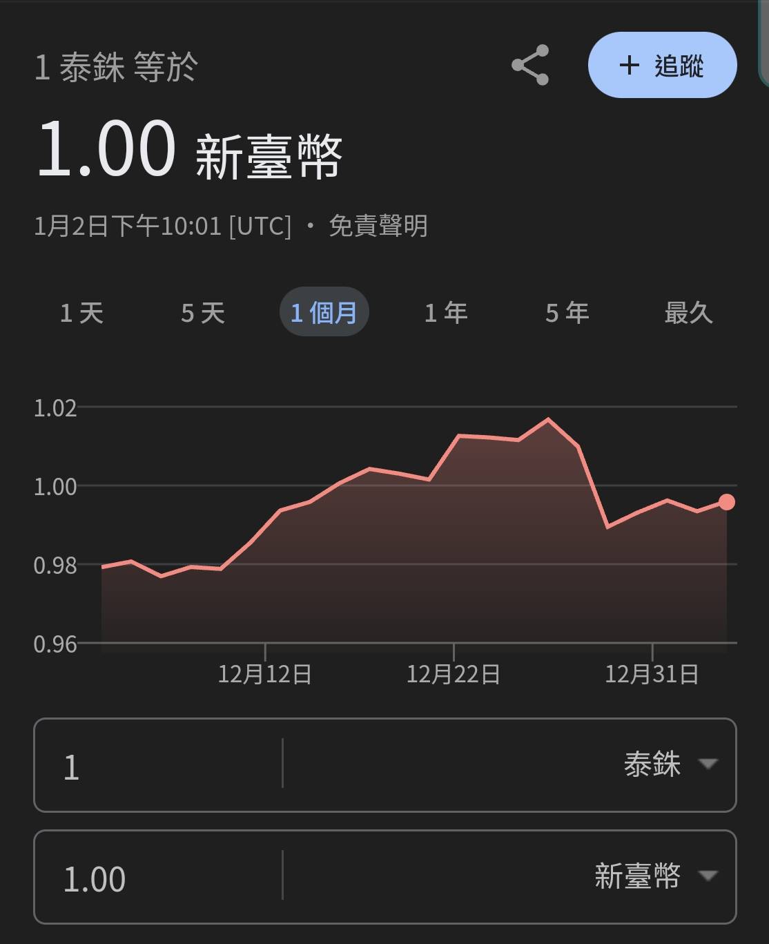 13F:推 adon0313: 泰铢超车台币这麽多欧49.217.235.126 01/04 23:46
