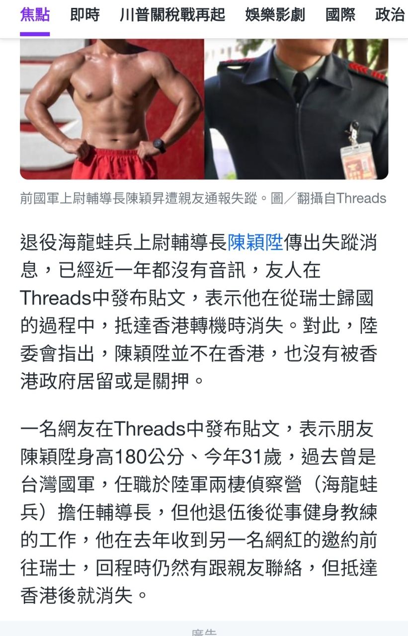 标题[新闻] 退役海龙蛙兵香港转机「人间蒸发11个月」