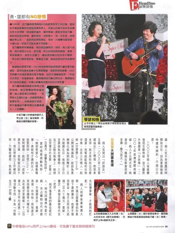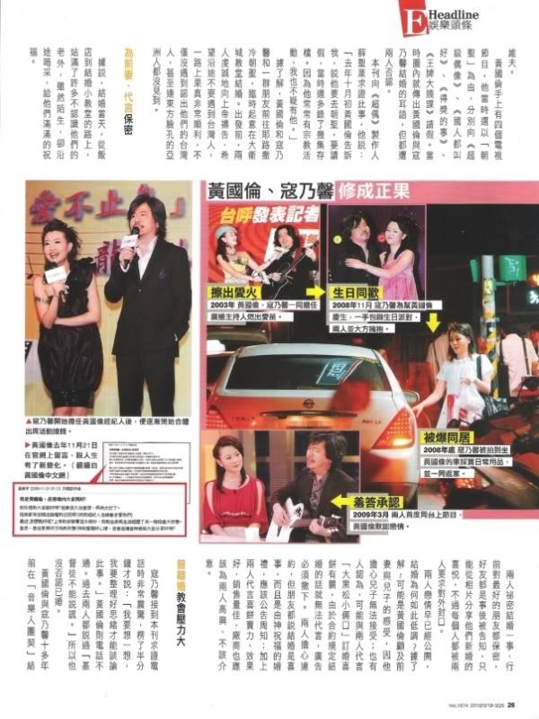 黄国伦也感情不顺。2003年他被周刊拍到与寇乃馨同车互动亲密,当时他还未与妻子任