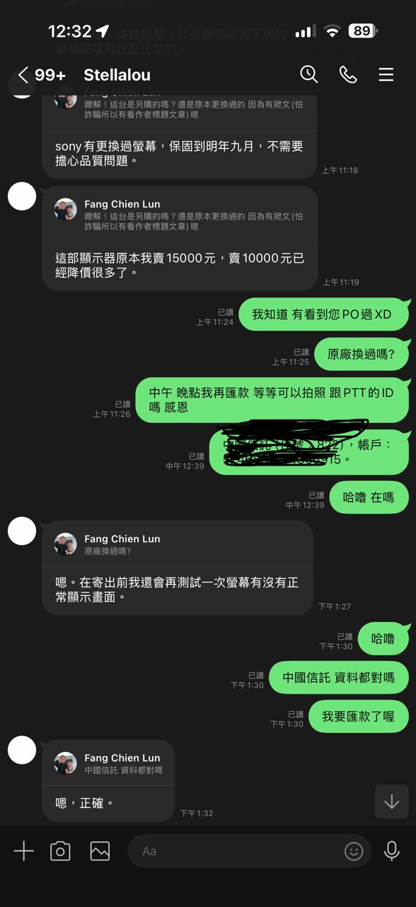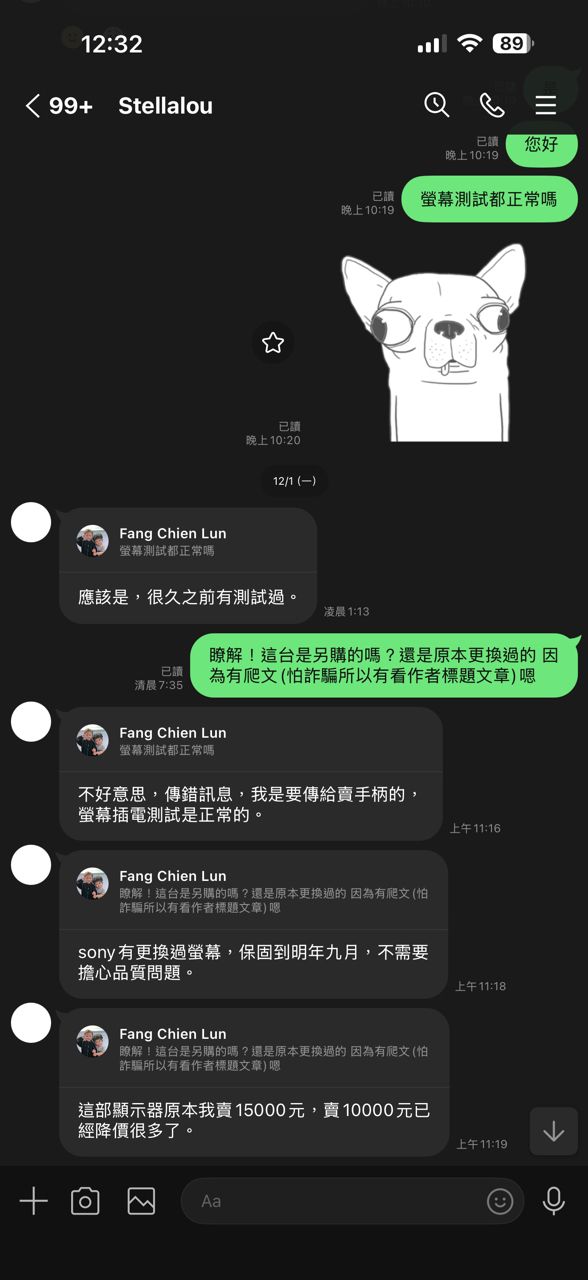 幕、还说原厂换过萤幕品质保证 .我就不以为意 .就这样达成协议交易