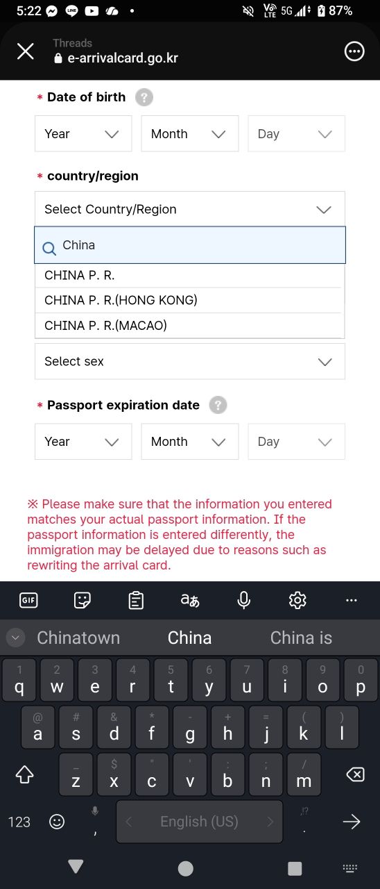 想想你们去韩国追星,电子签证上是China(Taiwan)耶!
