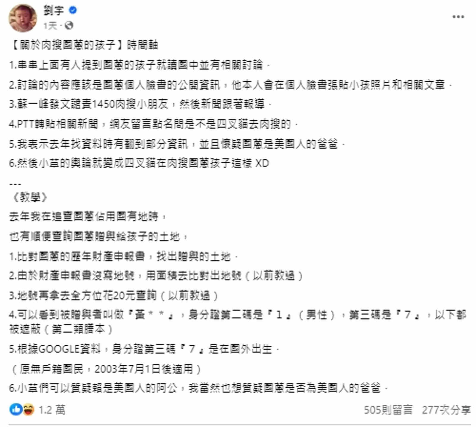 示,是小草的舆论变成自己在肉搜,同时也不忘在文末教学如何查询财产申报书进而肉搜