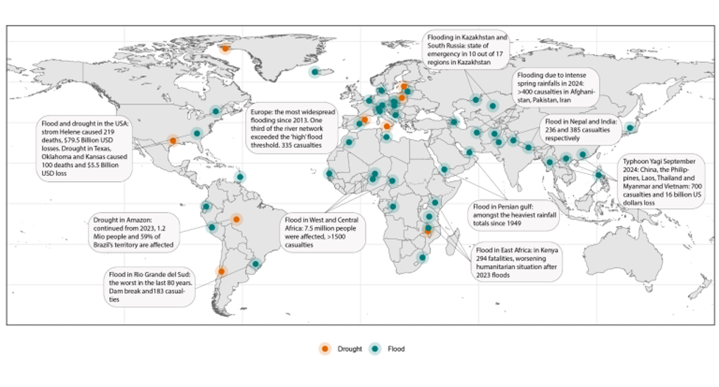 2024年乾旱、洪灾事件一览表。(图取自WMO官网)