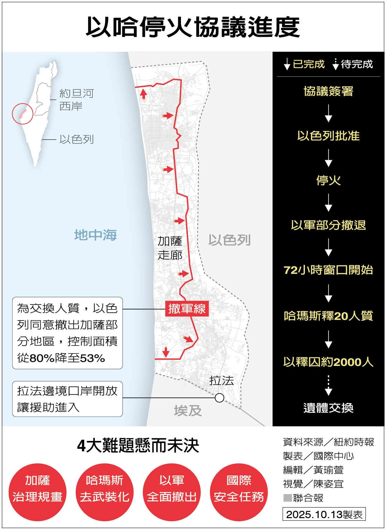 协议仍允许以军在整个加萨驻紮,尚不清楚以方何时、在什麽条件下才会同意全面撤军。