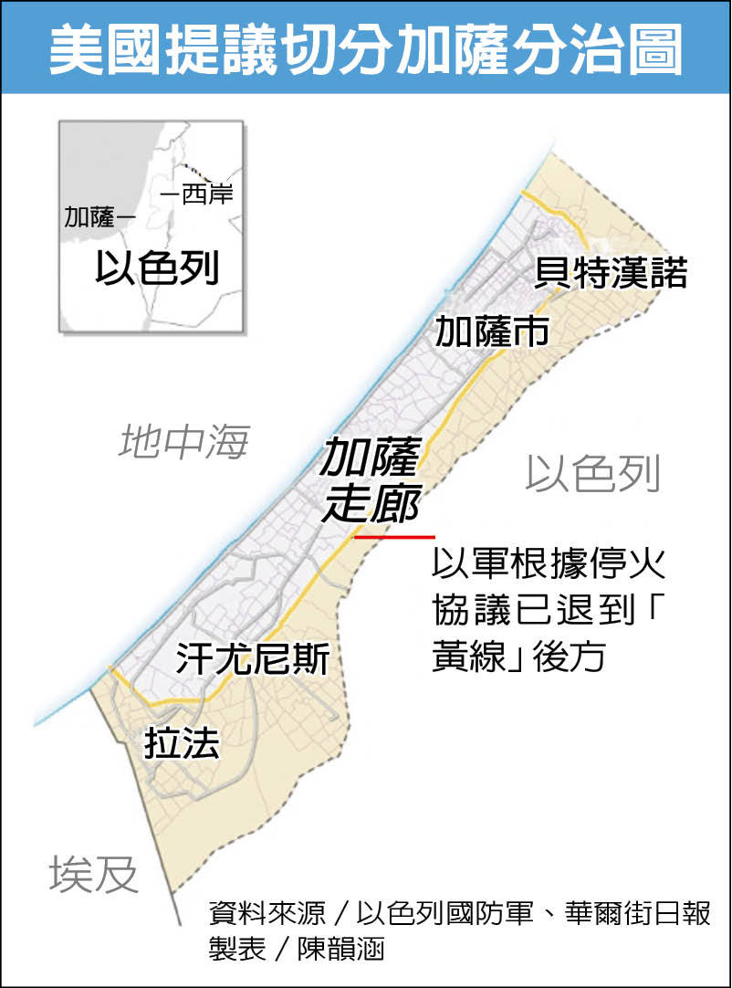 华尔街日报22日报导,范斯与库许纳向以色列提出将加萨一分为二的构想,目标在於扩大