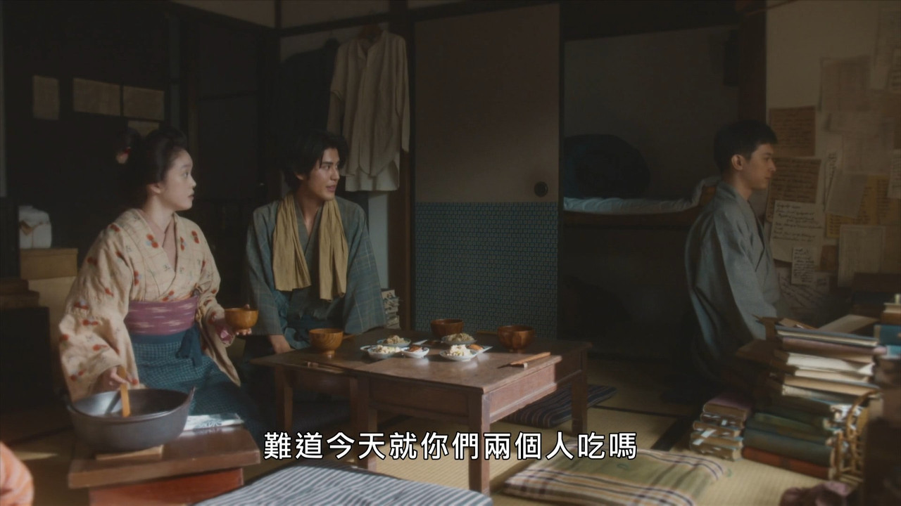 .时与锦织、根岸和若宫一同在房内等待银二郎,三人提起前来东京後发现松江相当落後