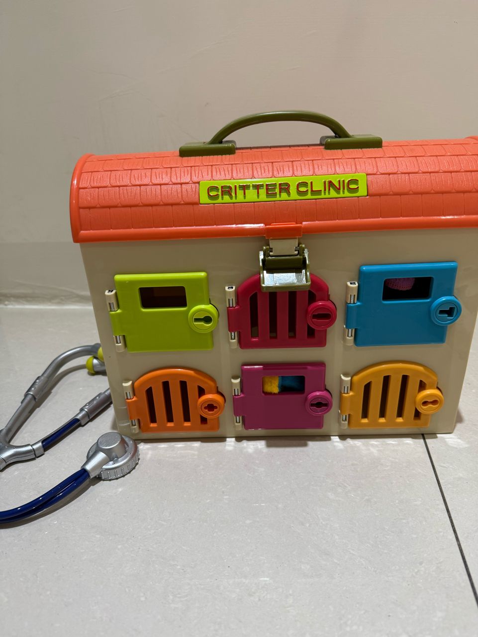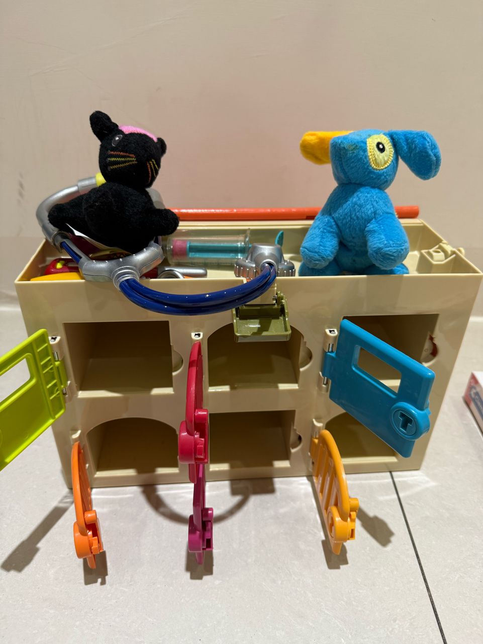 b toys宠物诊所,功能全部正常,配件都在都有使用痕迹,盒内有画到一条蓝色线,蓝色