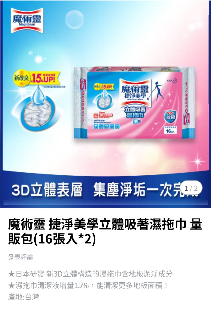 魔术灵捷净美学立体吸着湿拖巾16张入