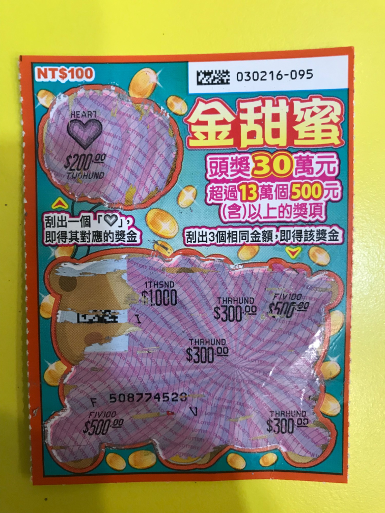 标题[报牌] 金甜蜜中 500