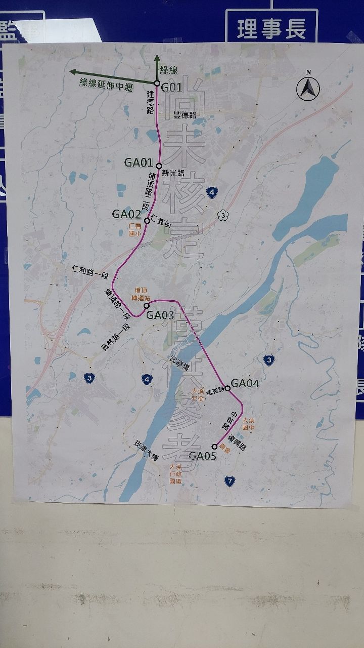 线通车,市府另规划绿线延伸中坜、大溪,其中,绿线延伸大溪原规划自G01站沿建德路