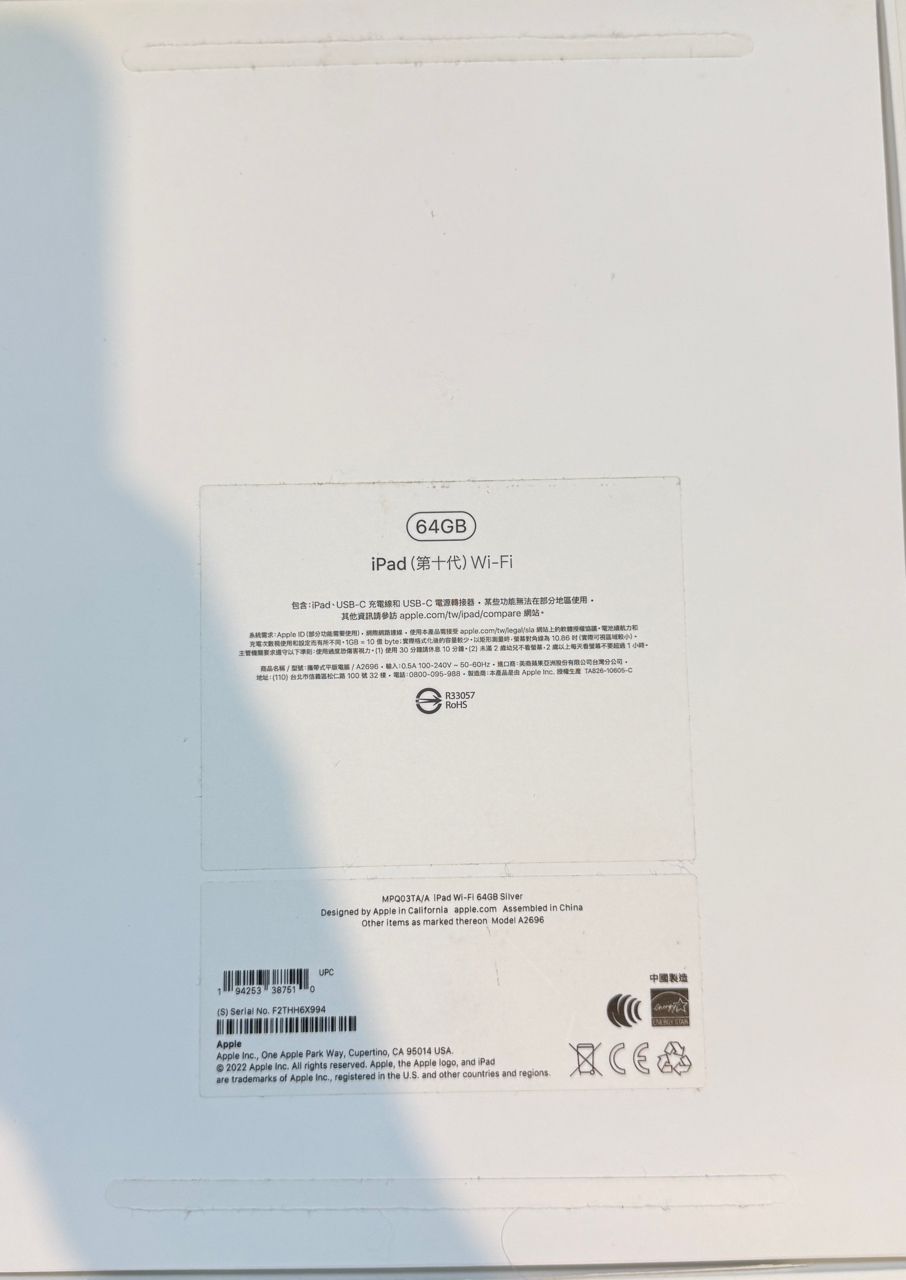 标题[贩售] 双北 iPad 10 64g WiFi 银