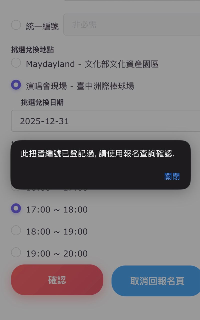 314F:推 iknisc: 疯掉 跨年刚登记时明明登记到棒球场19:00(有截到报名结果 12/11 20:50