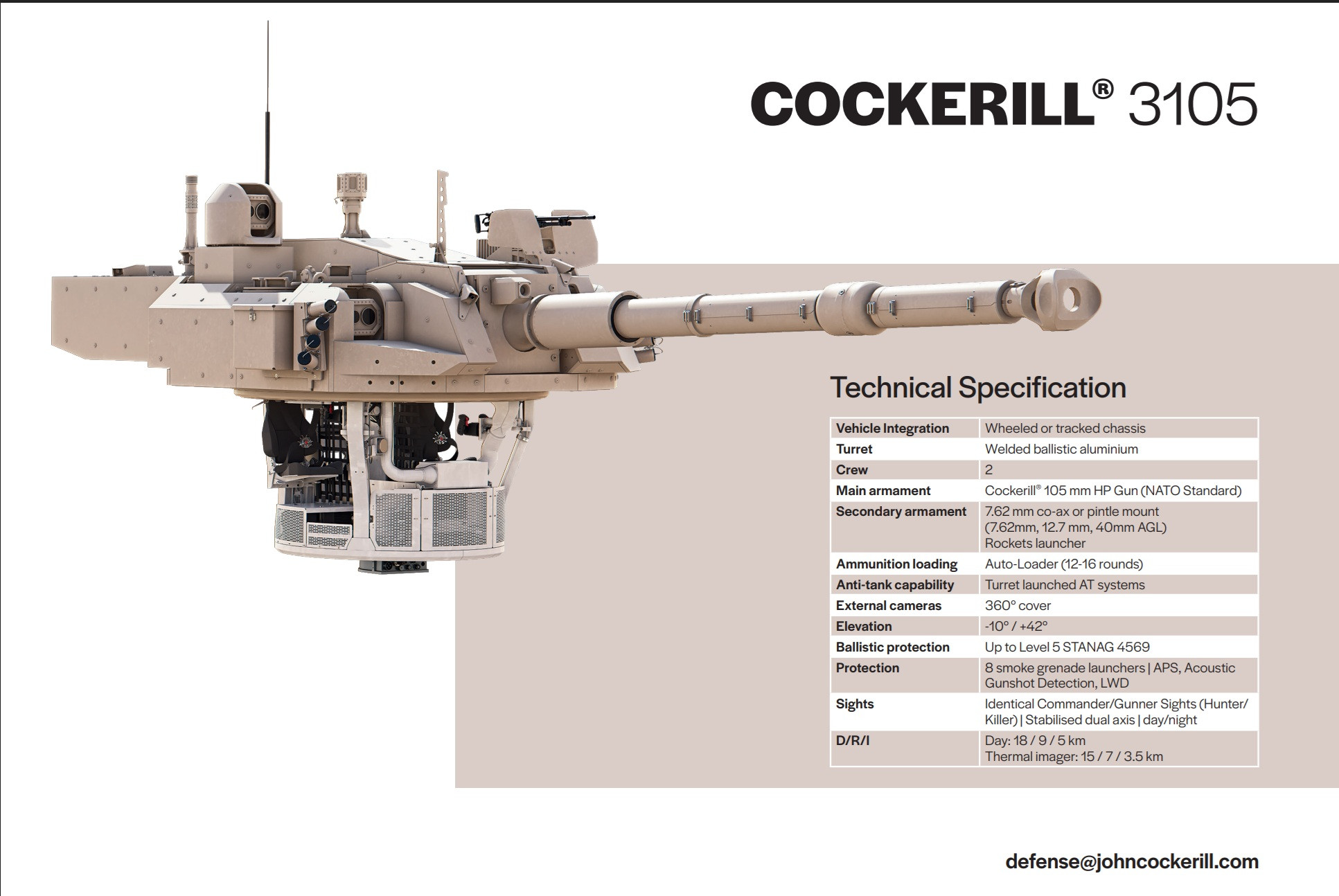Cockerill®3105炮塔仅有5吨,