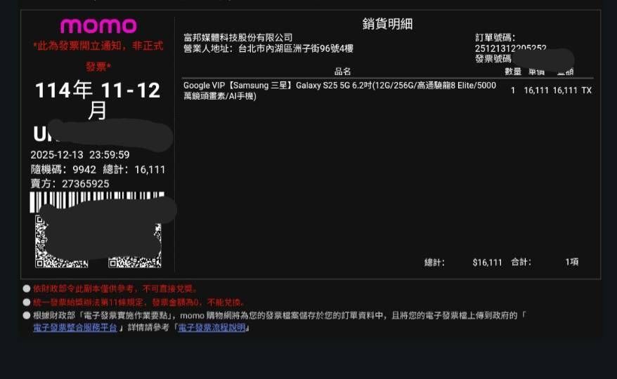 前天在momo用7000券下单s25 256g全新,用16,111买到