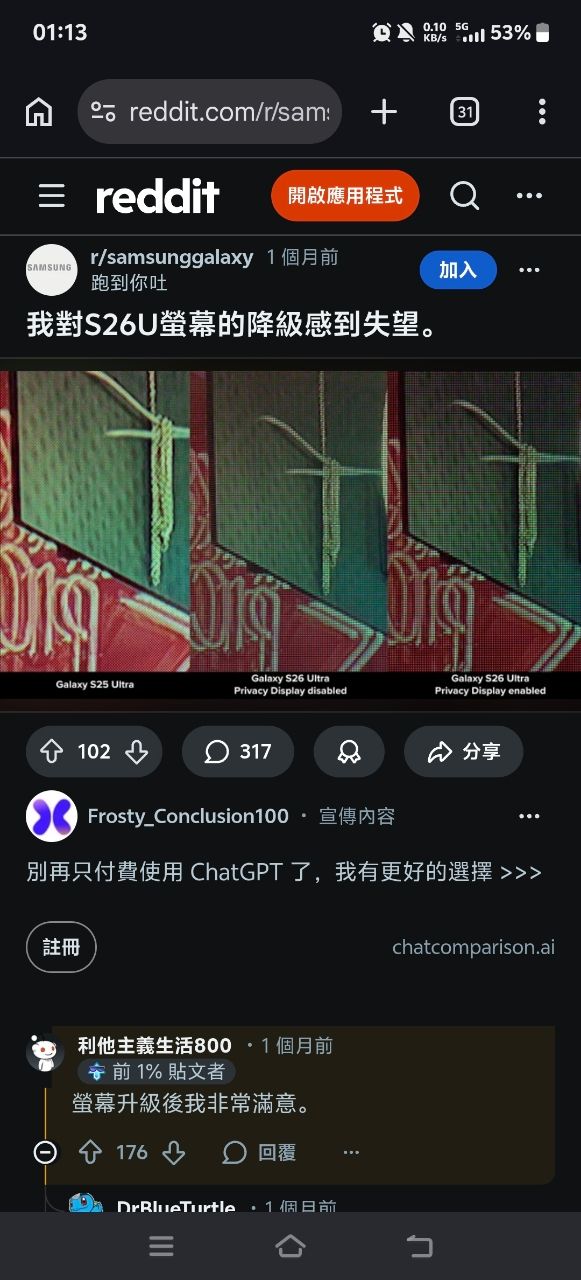 虽然板上说甚麽萤幕颗粒感、冷笋或是其他原因,但我觉得我个人使用就很满意了,其他问