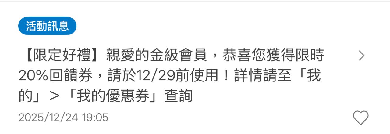 51F:推 sin70: 我银级,推播第一句「你是被选中的幸运会员」,其余一样 XD 12/24 19:55