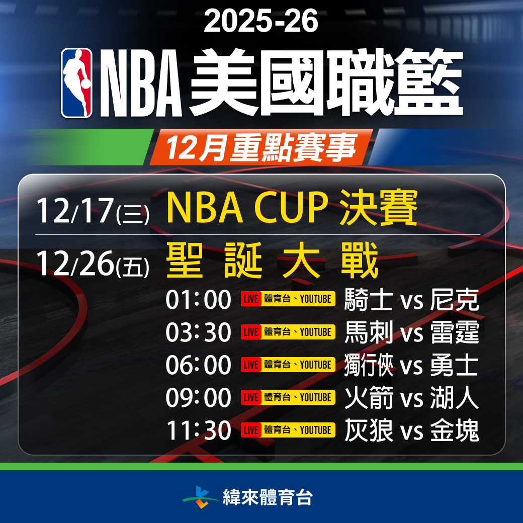 │ 12/13 (六) │12/14 (日) NBA Cup 四强 │ 12/15 (一) │