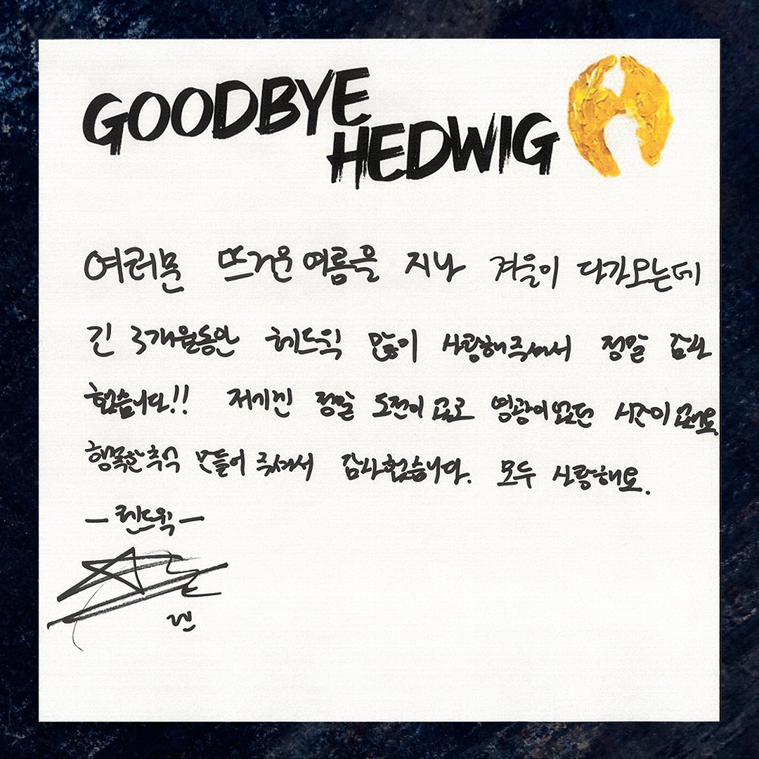 大家,从炎热的夏日到冬天,真的非常感谢在这漫长的3个月给予Hedwig许多的喜爱!!
