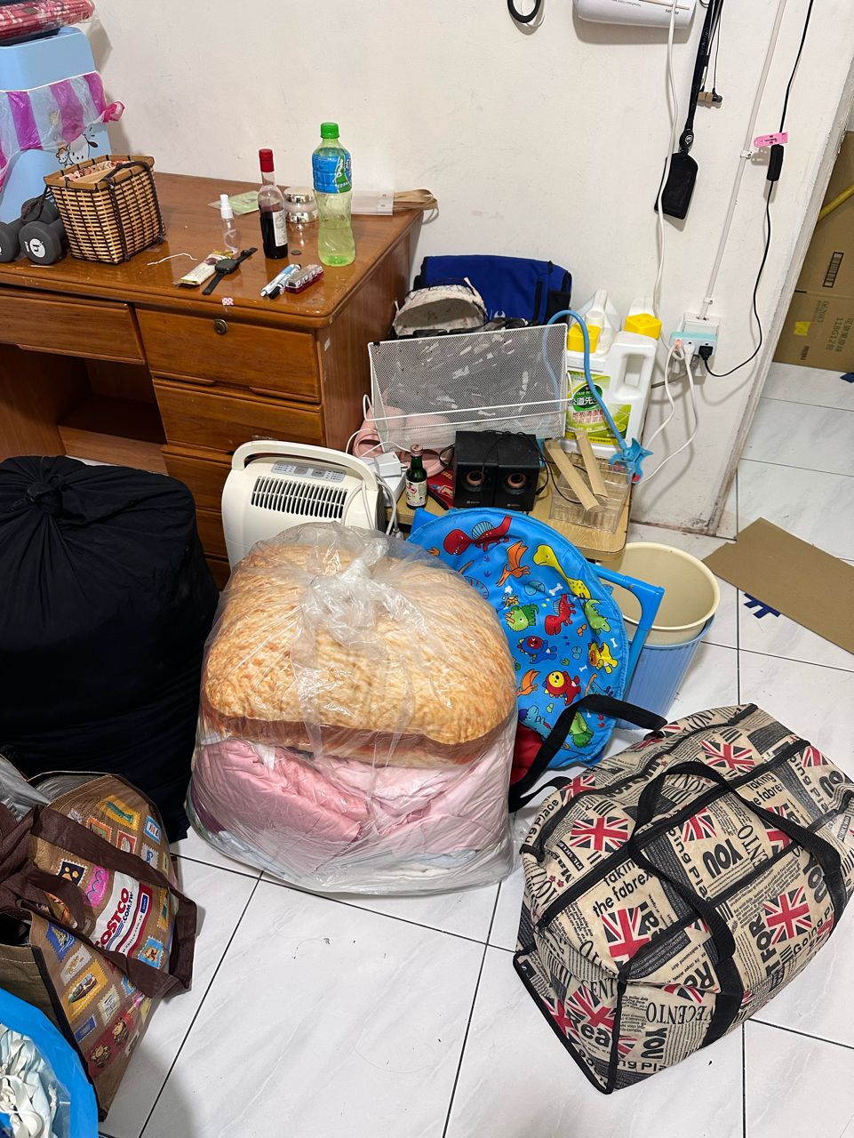 地板清洁剂、後背包*2、蓝芽喇叭、抱枕、羽绒被*2、床单被单、儿童座椅、不能调节理