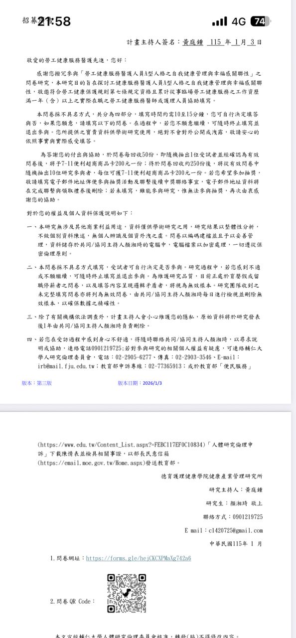 本文宣经辅仁大学人体研究伦理委员会核准114085