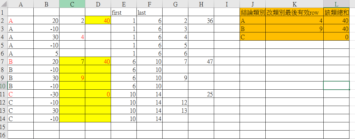F2 last 我写=IF(A2<>A3,ROW(),F3)