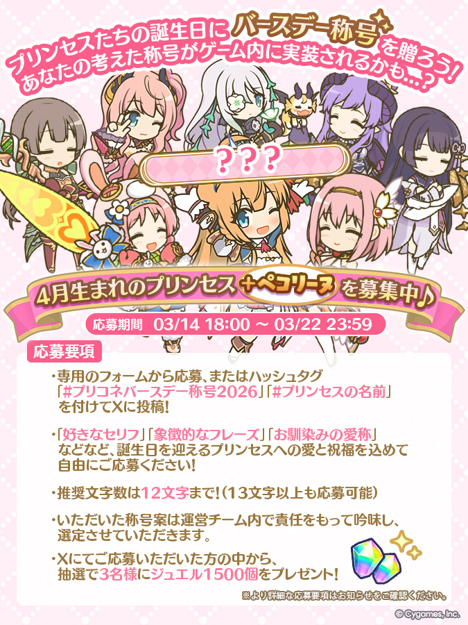 さらに、称号案をご応募いただいた方の中から抽选で3名様にジュエル1500个をプレゼン