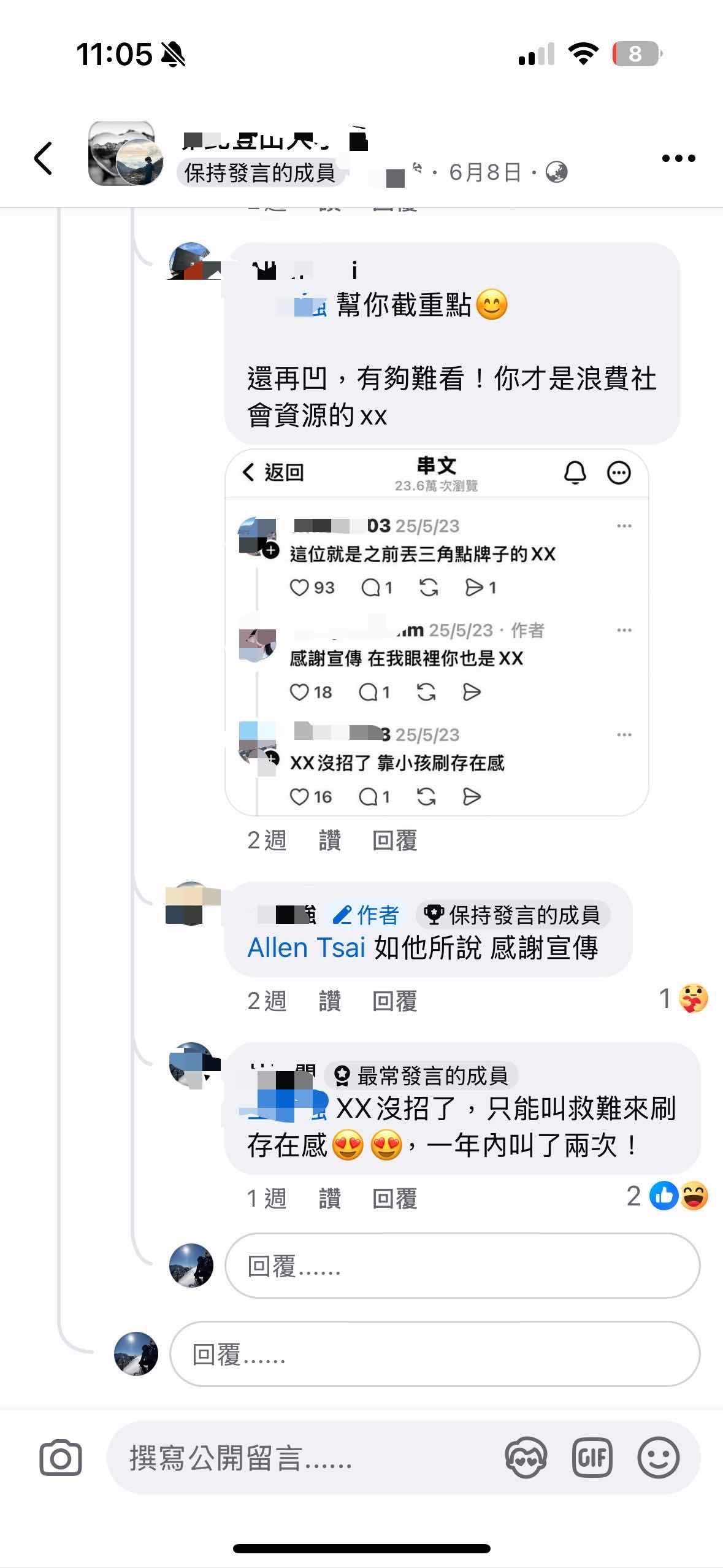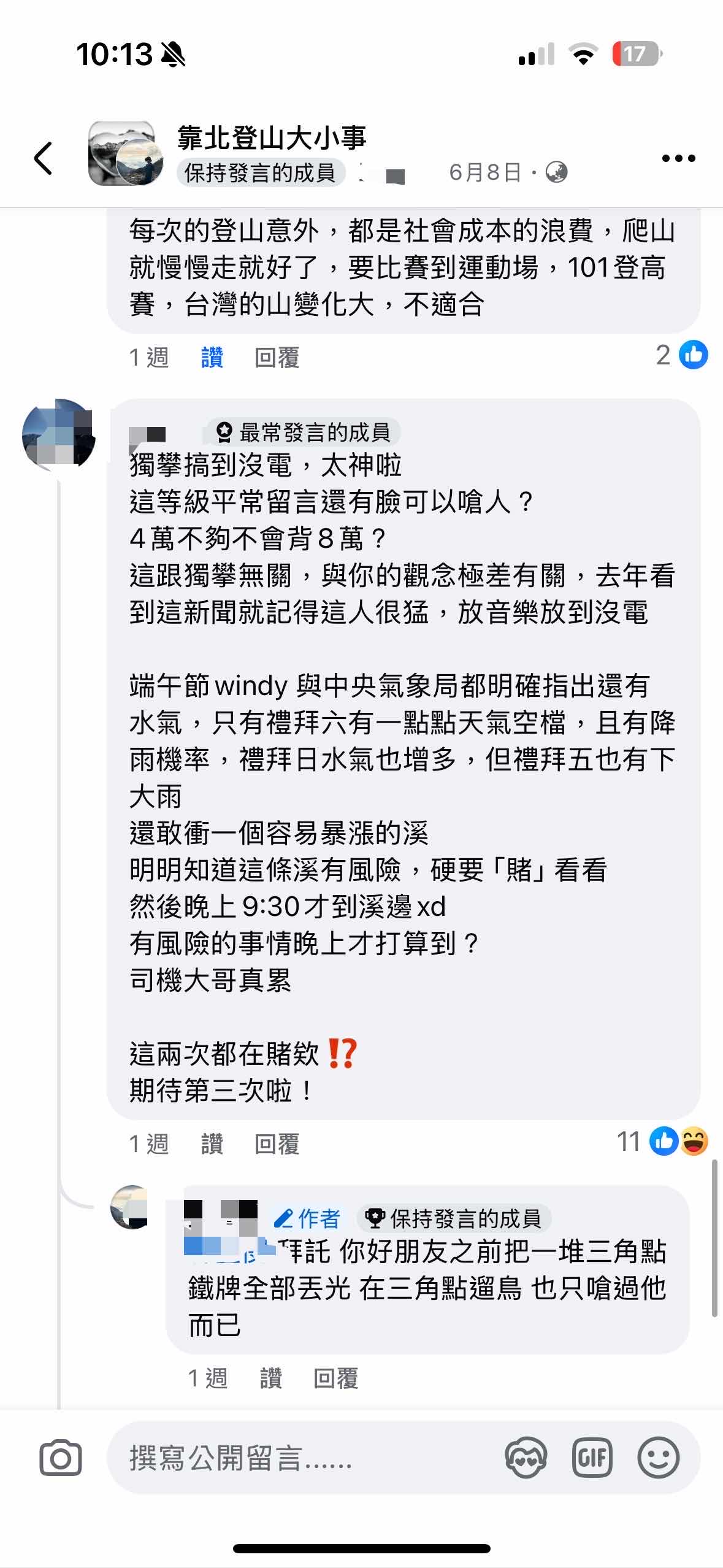 但我看对方回覆他人仍口气强硬,且在今年去年都叫了山难救援